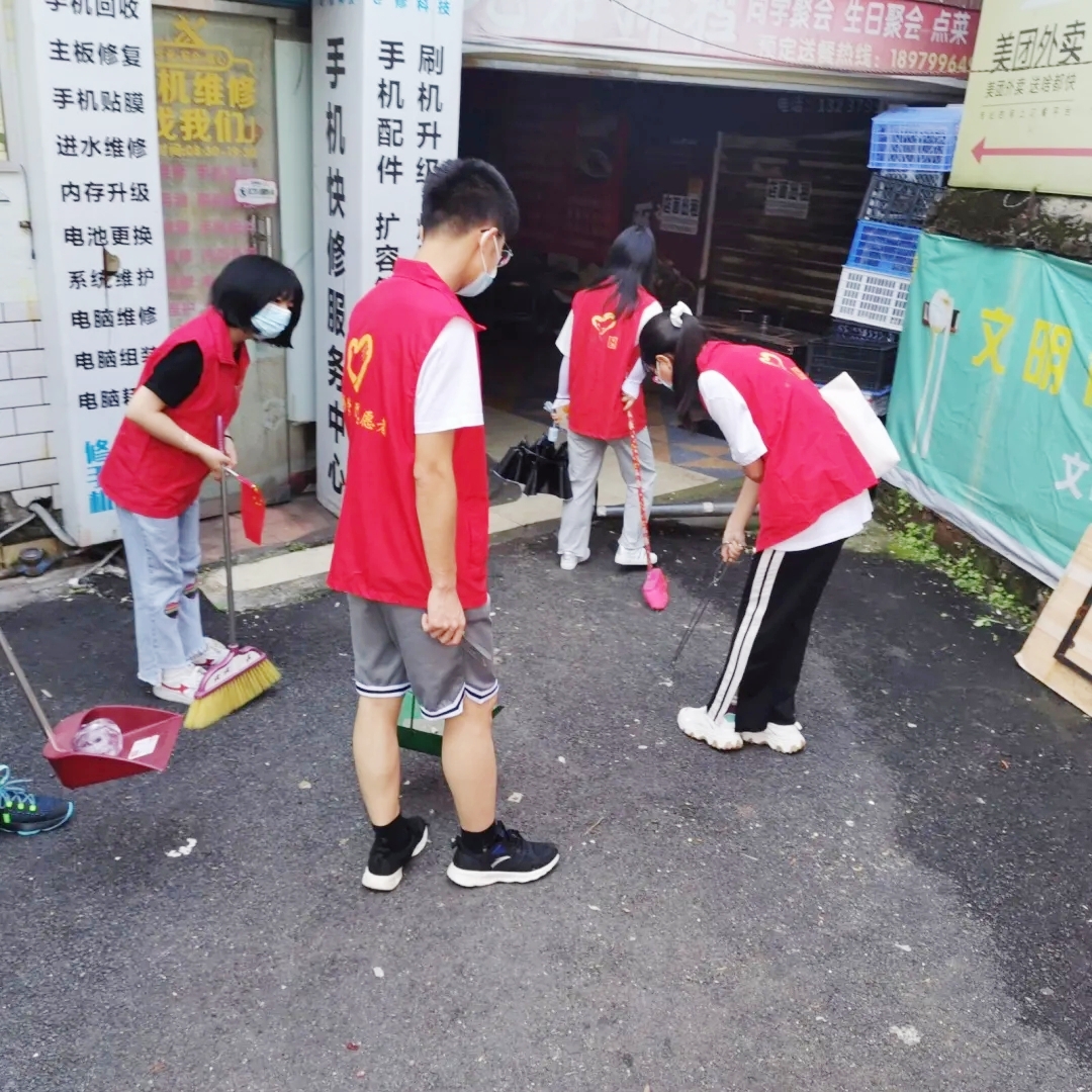 上午8时50分,活动成员在南门处准时集合。随后,队长黄盈对此次活动工作进行了简单的任务分配,全体成员对南门后区街道进行卫生清理。活动过程中,每位成员身穿红色马甲,手持一面红旗,并带着清理工具相互配合、有条不紊地进行着垃圾清理。曾敏书记和杨丽梅老师也积极参与清理活动。活动结束后,在全体成员的共同努力下,街区焕然一新。