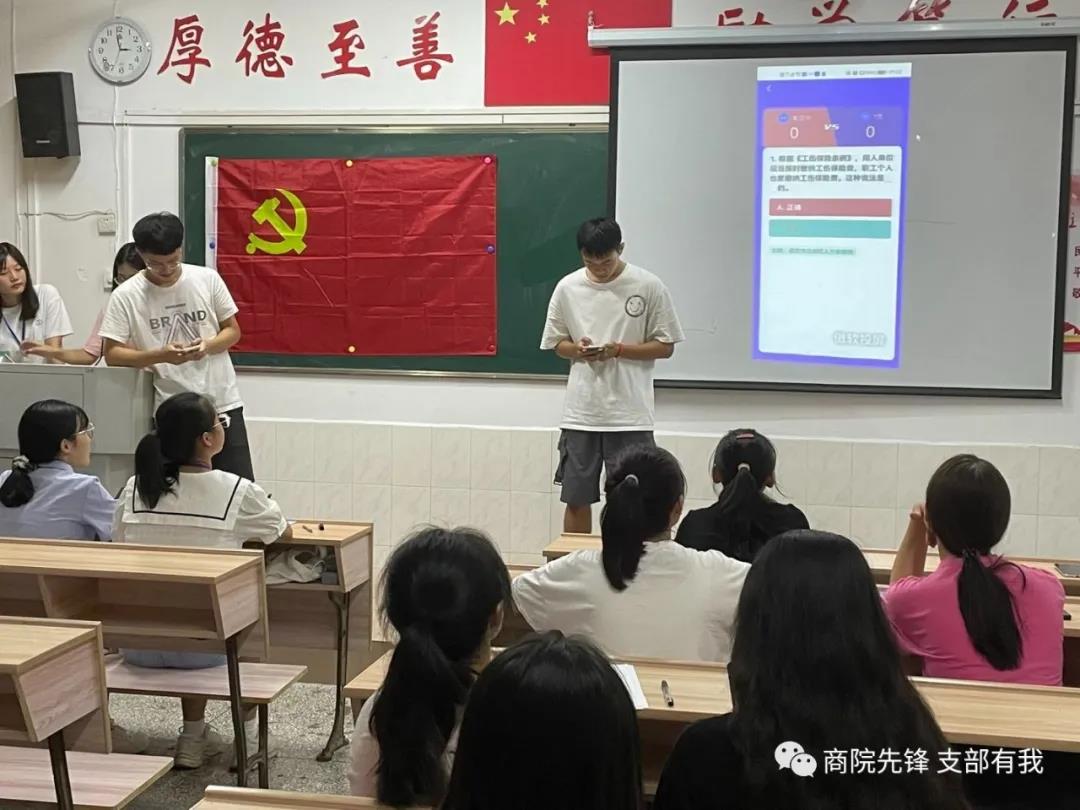 比赛正式开始前,参赛人员通过抽签确定参赛顺序,运用两个学习强国账号进行比赛,竞赛模式与内容皆来源于学习强国中的“双人对战”。大赛序幕在主持人的宣布下正式拉开,在答题环节中,各位选手们答题迅速、思维敏捷,现场气氛十分热烈,选手们拼手速、比知识,运用平时积累的党史知识,赢得现场人员的阵阵掌声。比赛逐渐进入白热化阶段,出现了一“战”到底的优秀选手,最终经过将近半个小时的激烈角逐,产生了此次的答题王、秒答王及幸运获奖者。最后是本次活动比赛结果的公布,吴煜超包揽了此次比赛的答题王和秒答王,汪慧敏为此次活动的幸运获奖者,杜子兰、聂姣、胡杰等人获得优秀奖。