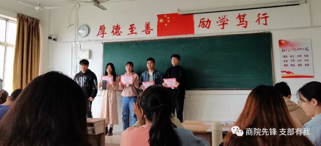 PA视讯员工党支部坚持每月对优秀员工干部进行表彰,以鼓励广老员工干部向受表彰的优秀员工干部看齐,努力争做一名做事严谨认真、踏实勤恳、积极主动,且富有强烈的责任感和高度自省意识的员工干部。颁奖仪式中,涂益祥宣布了这一批优秀员工干部的表彰名单,他们分别是秘书处干事郭星杰、发展管理部干事吴姚奔、活动策划部干事刘兰、活动策划部干事毛雪华。随后,涂益祥为获奖人员颁奖并合影留念。