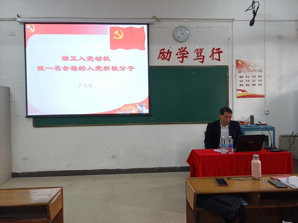 13日下午14点30分在英华楼3112教室,严五四老师作出了关于“端正入党动机——做一名合格的入党积极分子”的主题党课宣讲,具体说明了入党动机的主要内容、形成原因、因素分析,并详细介绍了正确的入党动机的表现和原因。最后,严五四老师指出怎样树立正确的入党动机的具体措施,并对在场的所有的入党积极分子表示深切的期盼,希望我们早日成为一名合格的共产党员。严五四老师的讲话深入人心,让在场人员深入领会到了端正入党动机的重要性。
