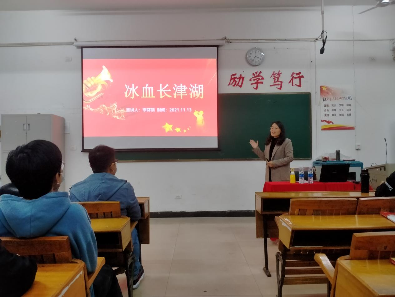 11月13日晚上19点30分在英华楼3112教室,李芬娟老师为大家讲述了抗美援朝战争第二次战役的收官之战——长津湖战役,李老师首先介绍了这场战役的作战背景和战力对比,生动描绘了战争的经过和结果,最后作出了战后反思,让在座入党积极分子深刻感受到抗美援朝战争的艰难以及志愿军将士们强大的意志力和“血色军魂”,让在场入党积极分子们更加懂得当今幸福生活的来之不易,革命先辈的无私付出。最后,李芬娟老师送给在场所有入党知识分子一句话,“太平本是英雄定,不见英雄享太平”,表达了对积极分子们殷切的希望。她强调,作为入党积极分子应该要时时刻刻自我提醒着,我们几十年来的幸福生活是多么地来之不易,是多么地值得珍惜。