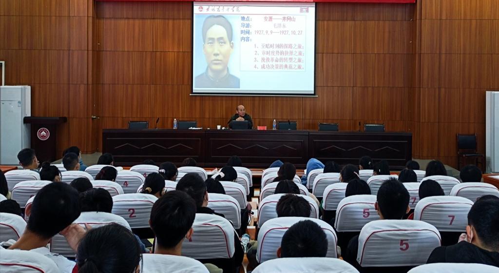 讲座中,他重点讲述了从安源到井冈山这场中国革命的伟大转型之旅,带在场人员深入领会了中国革命至暗时刻下的中国共产党带领工农群众开辟根据地的坚持与信念。他阐述了中国共产党团结带领中国人民革命的伟大征程,并详细介绍了毛泽东关于武装斗争的深刻阐述。他重点介绍了萍乡在革命中发挥的重要作用,讲解了莲花会议等重要史实,不仅在场所有人员深入领会了伟大建党精神,更加深了对脚下红土的理解,加深了民族自豪感。最后,文侃教授指出,要学习伟大的安源精神和井冈山精神,勇于担当作为,坚定理想信念,敢为人先、开拓创新。