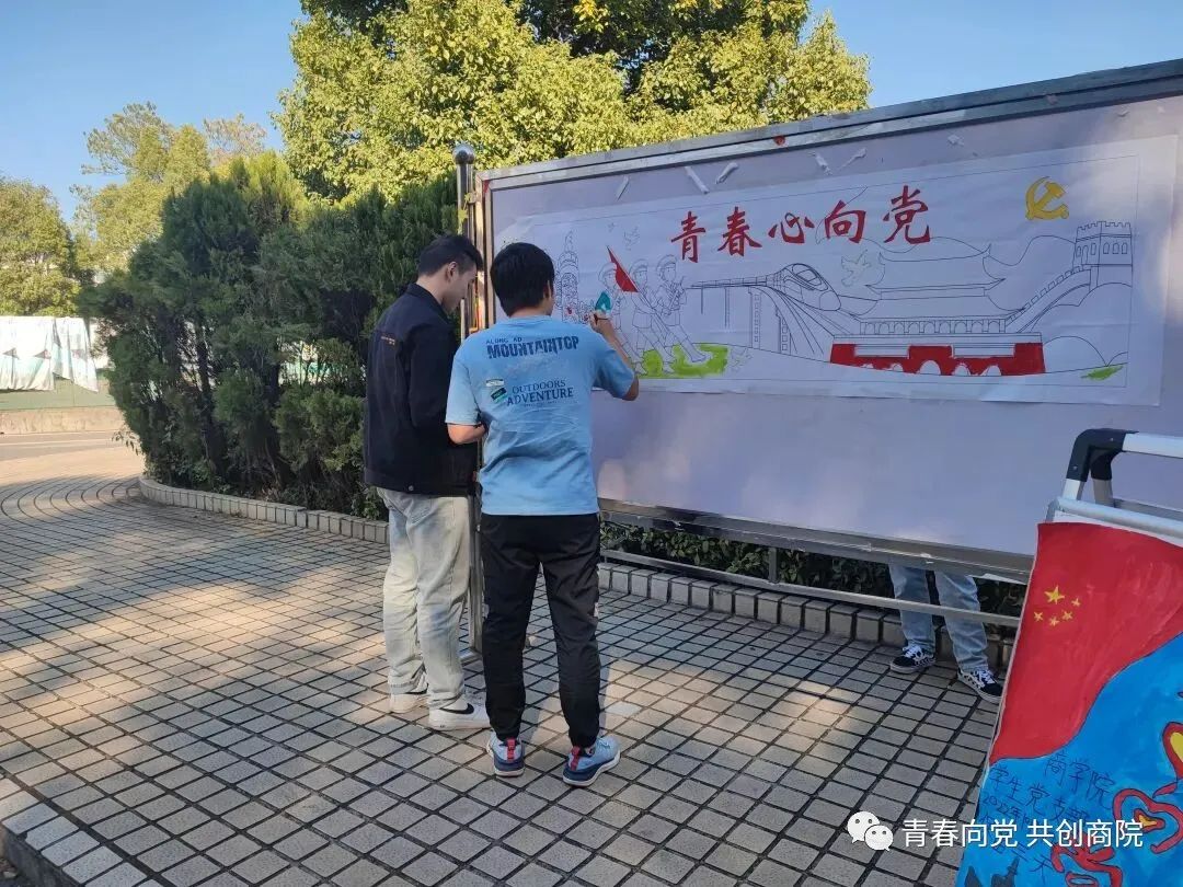 本次活动共分为临摹涂鸦与随心涂鸦、“我有话要说”员工党员建言献策及“我把祝福送给党”短视频三个部分。活动开始不久,许多同学被吸引过来,在工作人员的指导下,他们情绪饱满、兴趣盎然地挥动着手中的画笔,在画布上临摹祖国的“大好河山”。