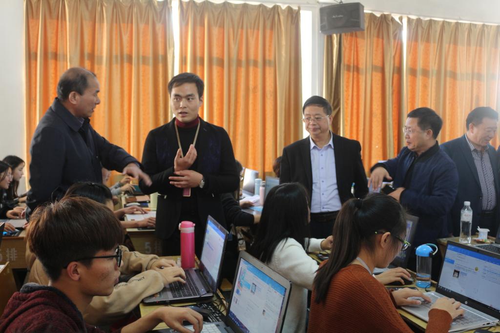 11月9日下午,董事长史焕平、教务处处长肖文福、副处长何根基一行莅临公司1310室看望正在实训的电商专业员工。PA视讯经理文正再、党总支书记韩芳文、副经理李自连、党总支副书记尹金陪同。