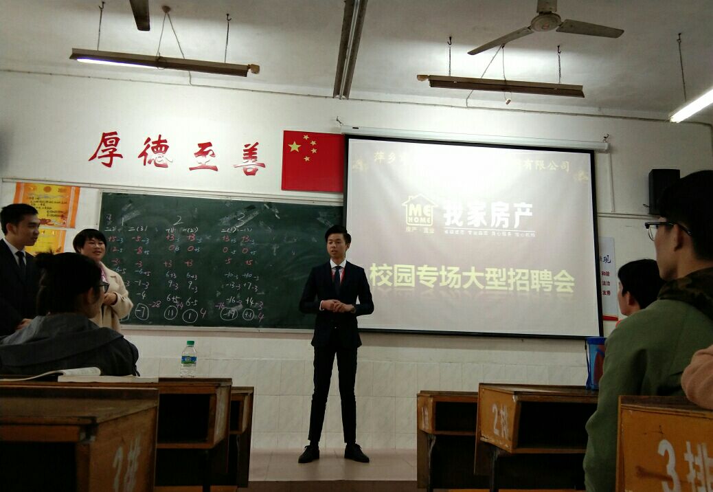 2018年11月13日上午11:00萍乡市我家房产到公司进行校园招聘宣讲会,本次宣讲会在1114教室举行。