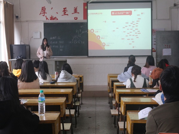 在本次宣讲会中,中国人保财险公司负责人向员工介绍了中国人财保险公司的公司规模以及招聘要求、用工形式、福利待遇以及所招聘岗位的岗位描述。最后,公司负责人给现场同学进行了一个简短的答疑交流环节。同学们就职业发展、晋升道路、薪资待遇等进行踊跃提问。负责人给每位提出问题的同学都给予了详细的回答并给出建议。
