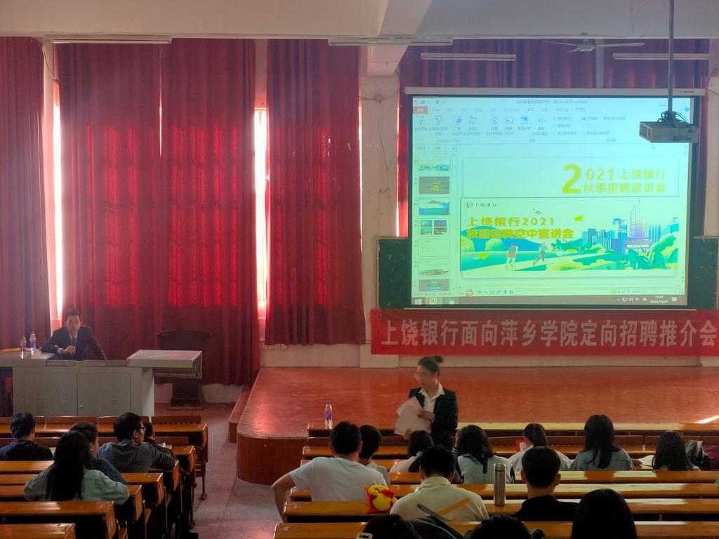 2020年10月27日,PA视讯于跬步楼1115室召开上饶银行校园招聘宣讲会。本次宣讲会由上饶银行有关工作人员主持,部分2021届毕业生参加本次宣讲会。