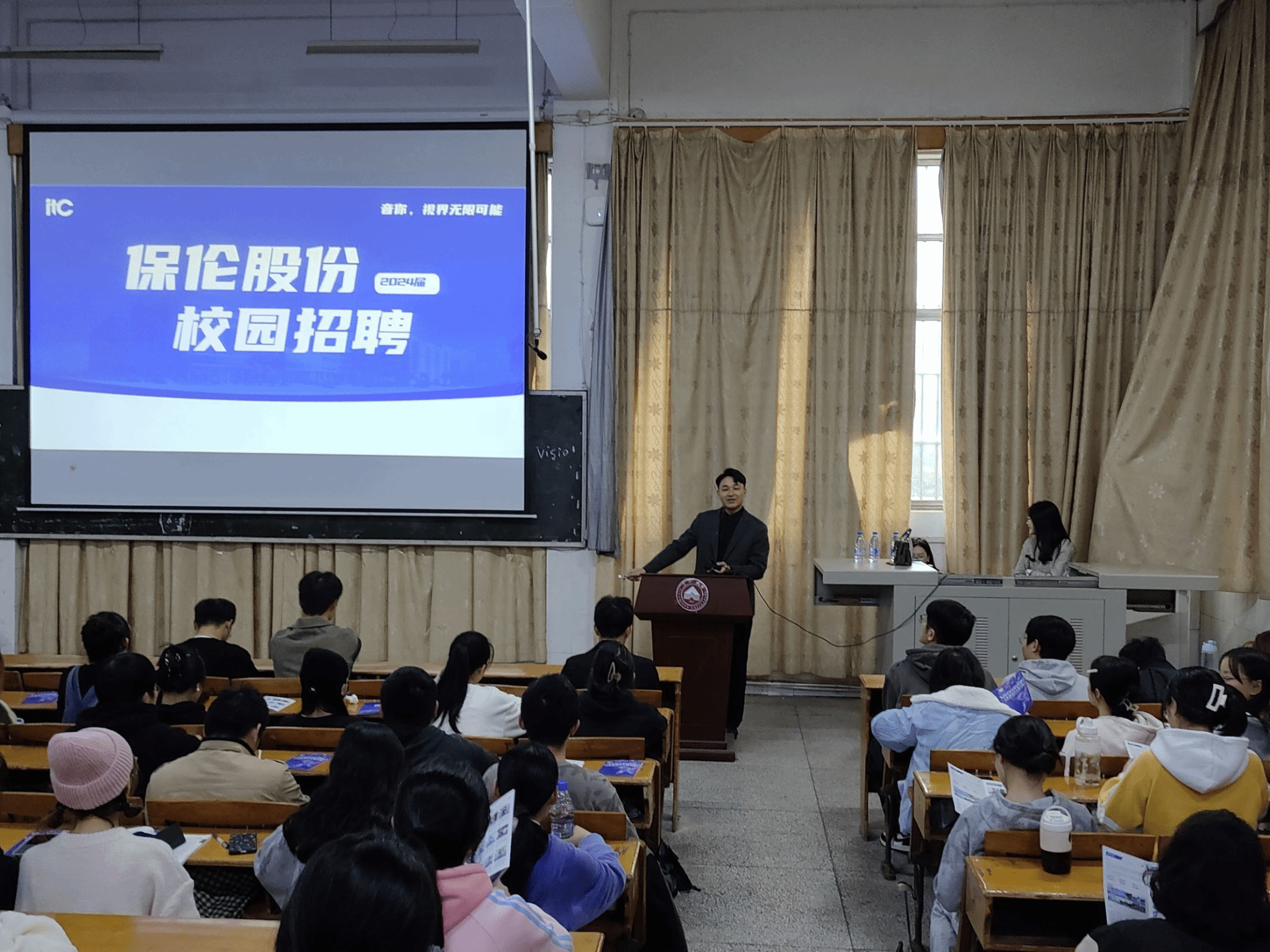 此次宣讲从认识itc、走进itc、选择itc及校招详情四个部分组成,详细有序地讲述了关于我们、招聘岗位要求、薪资福利待遇、本届招聘细则等方面的内容,毕业生对itc情况了解全面,兴趣浓厚,积极投递简历。