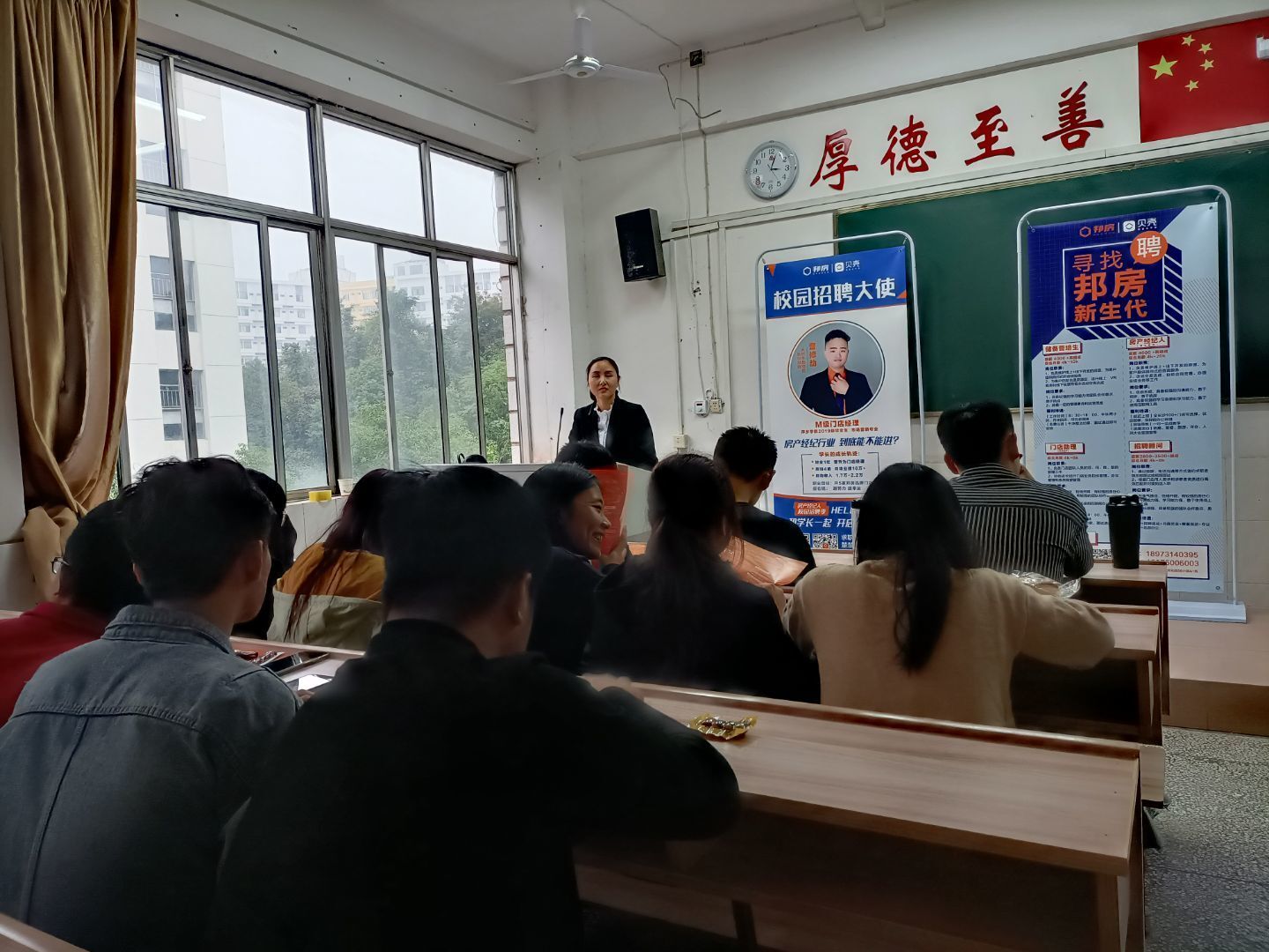 贝壳找房聚合和赋能全行业的优质服务者,打造开放的品质居住服务生态,致力于为三亿家庭提供包括二手房、新房、租赁、装修和社区服务等全方位居住服务。企业宣传人员为广大同学配以演讲,播放视频促进员工们对于此次活动的了解,同学们简单了解企业基本情况后,该公司人力资源部相关人员对一系列职位进行了详尽解释。讲解员的讲解鞭辟入里,言简意赅正中要害,同学们听之入神。